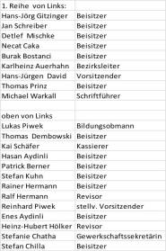 durch die Wahlversammlung, bei der ein 6-köpfiger Vorstand, 13 Beisitzer und 3 Revisoren gewählt wurden. Als Vorsitzender wurde Hans-Jürgen David und als stellvertretender Vorsitzender Reinhard Piwek