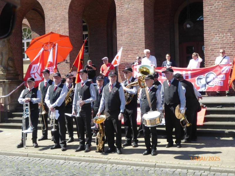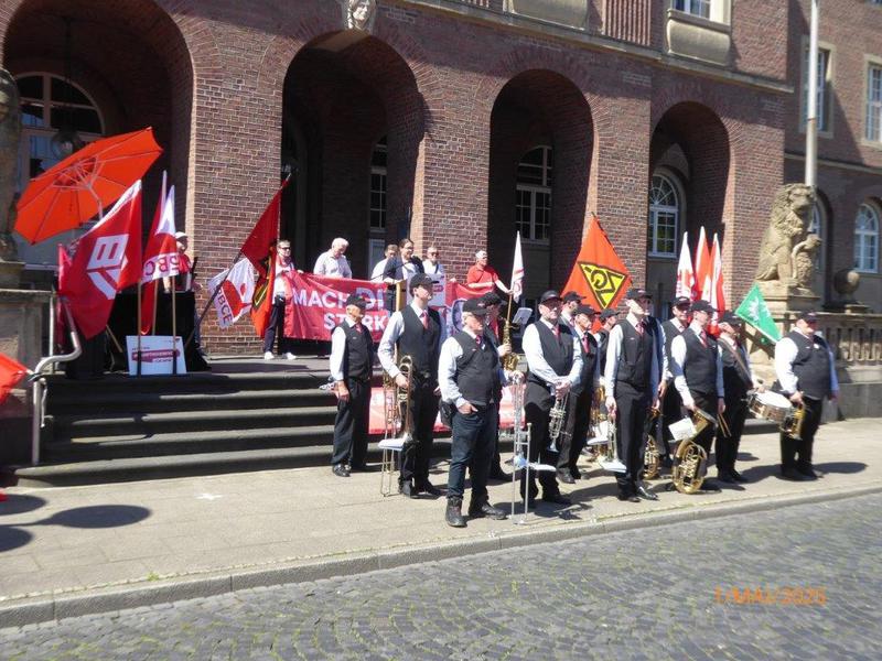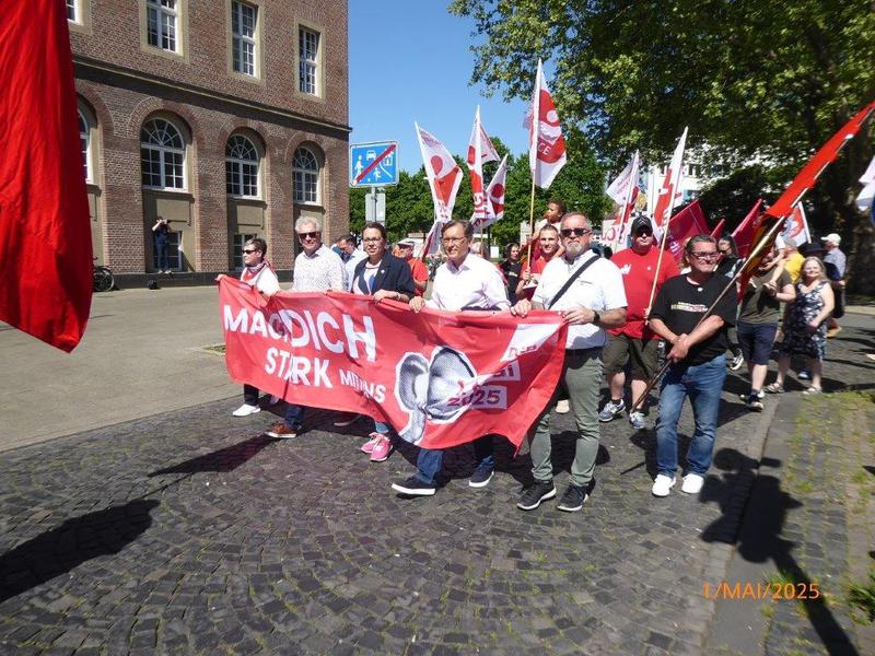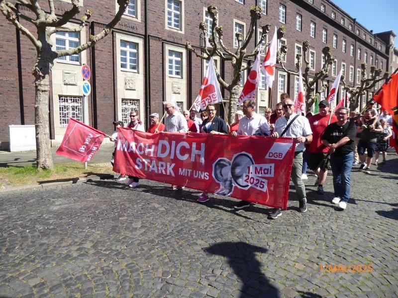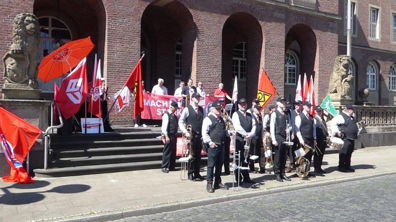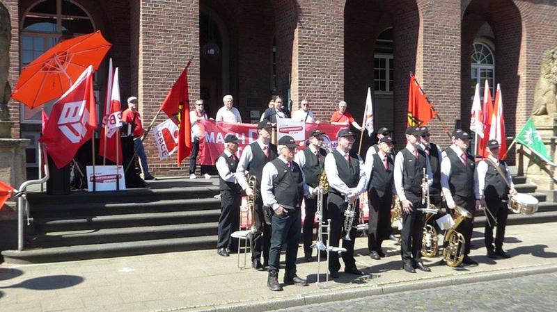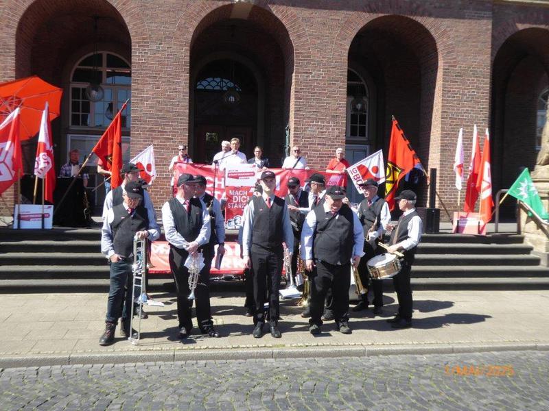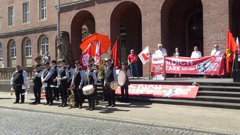 Auf dem Bild sind links Peter Holtgreve, der Vorsitzende des DGB Stadtverbands Herne, und rechts Thomas Rößler, Betriebsrat, zu sehen. Ihr Engagement und ihre Unterstützung sind ein wichtiger Bestandteil des Kampfes für die Rechte und Interessen der Arbeiterinnen und Arbeiter in der Stahlindustrie. Gemeinsam zeigen sie, dass Solidarität nicht nur ein Wort, sondern eine lebendige Praxis ist, die in schwierigen Zeiten Halt und Kraft gibt.