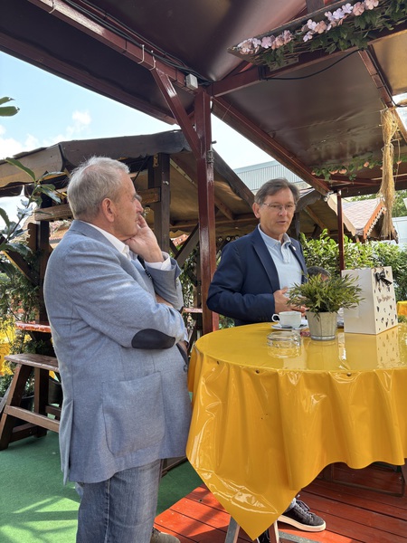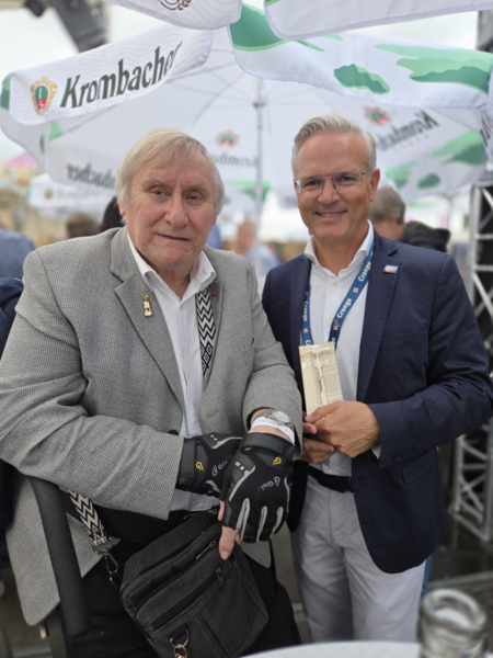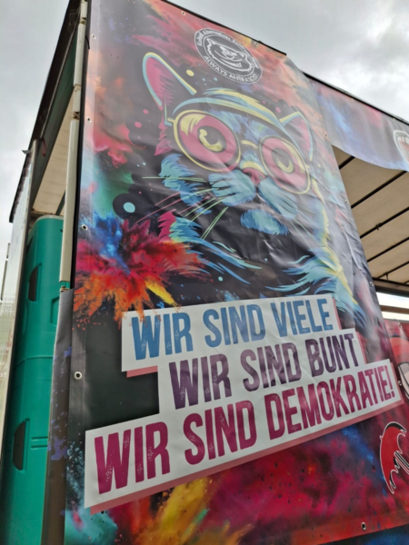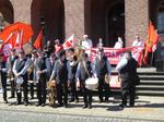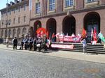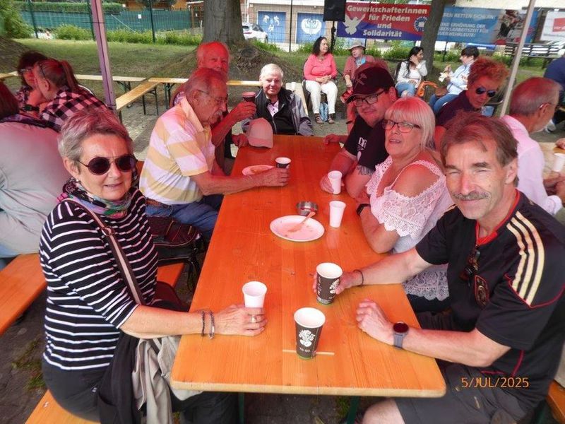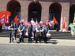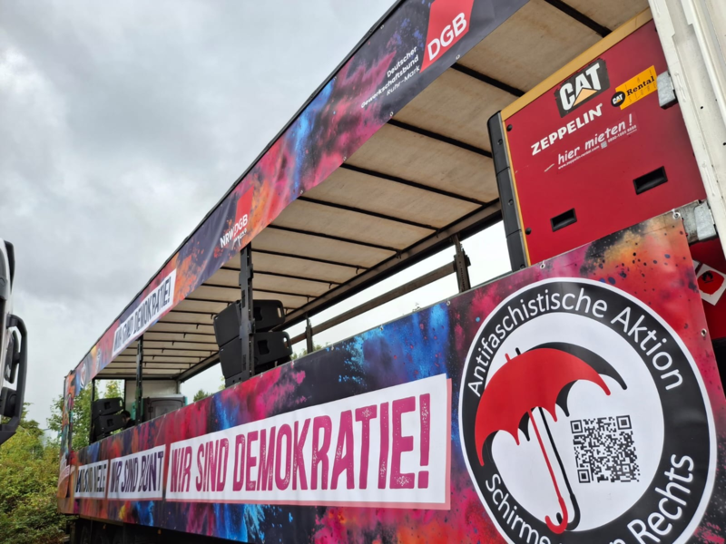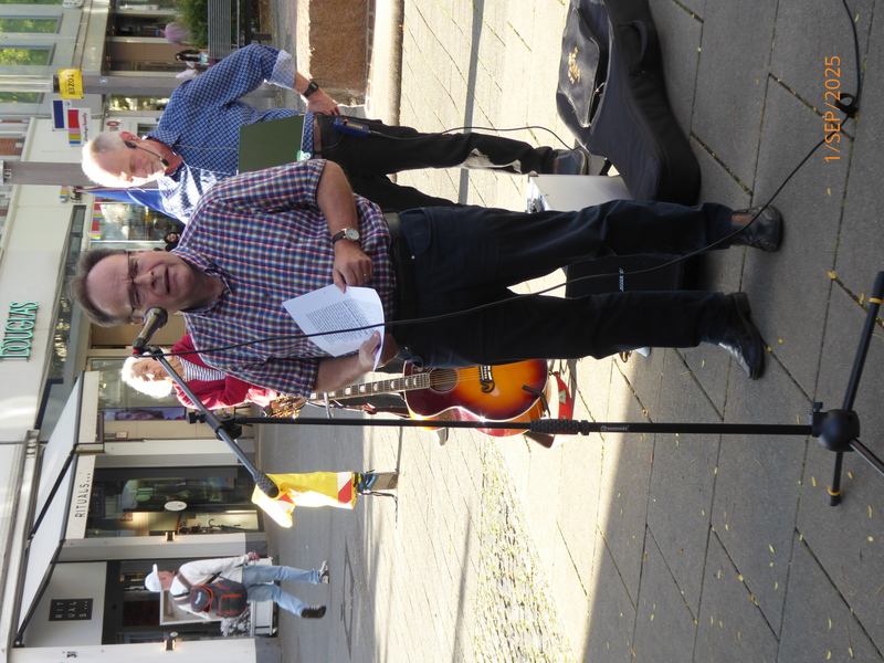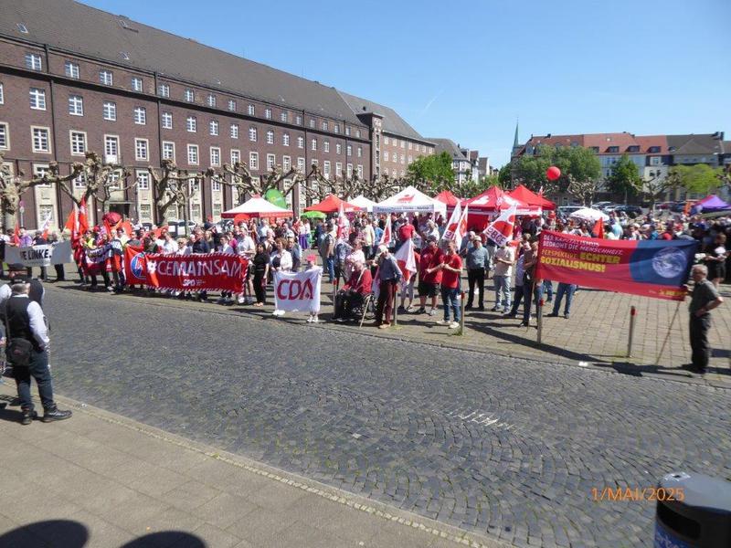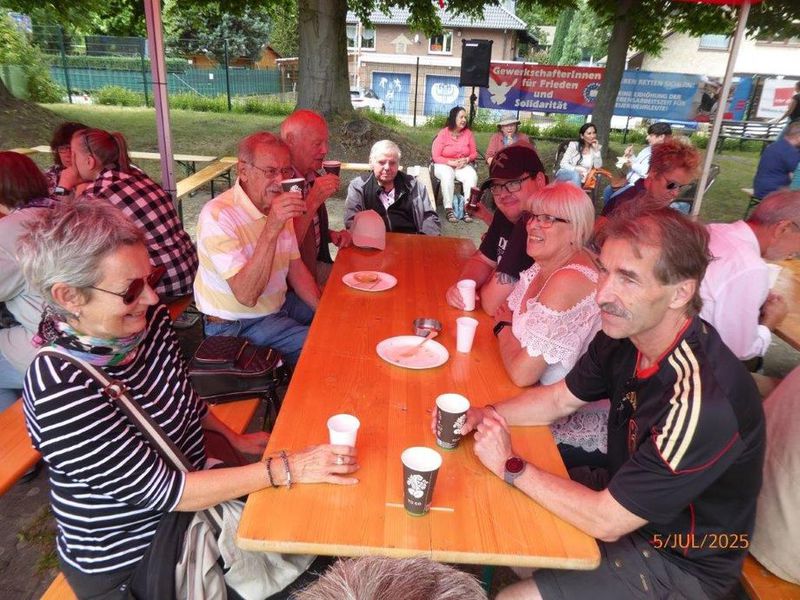 Auf dem Bild sind links Peter Holtgreve, der Vorsitzende des DGB Stadtverbands Herne, und rechts Thomas Rößler, Betriebsrat, zu sehen. Ihr Engagement und ihre Unterstützung sind ein wichtiger Bestandteil des Kampfes für die Rechte und Interessen der Arbeiterinnen und Arbeiter in der Stahlindustrie. Gemeinsam zeigen sie, dass Solidarität nicht nur ein Wort, sondern eine lebendige Praxis ist, die in schwierigen Zeiten Halt und Kraft gibt.